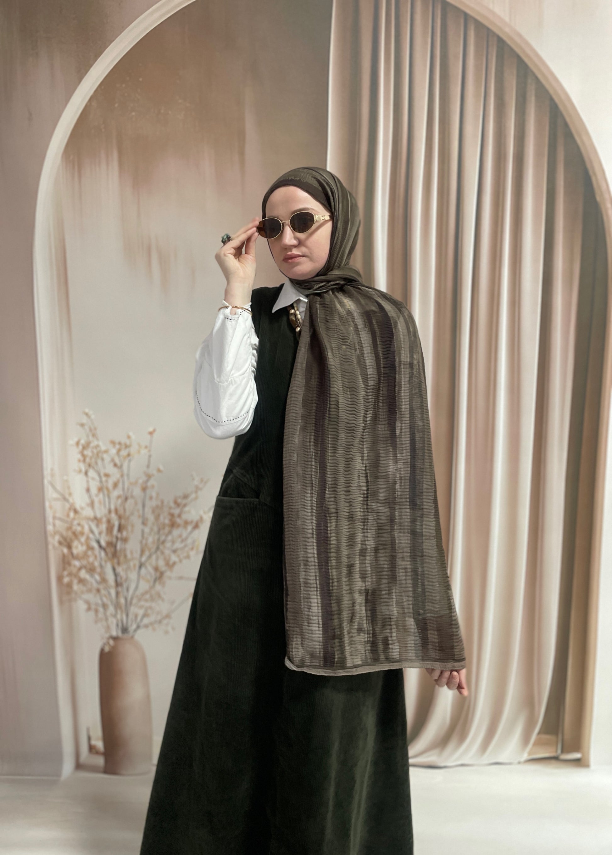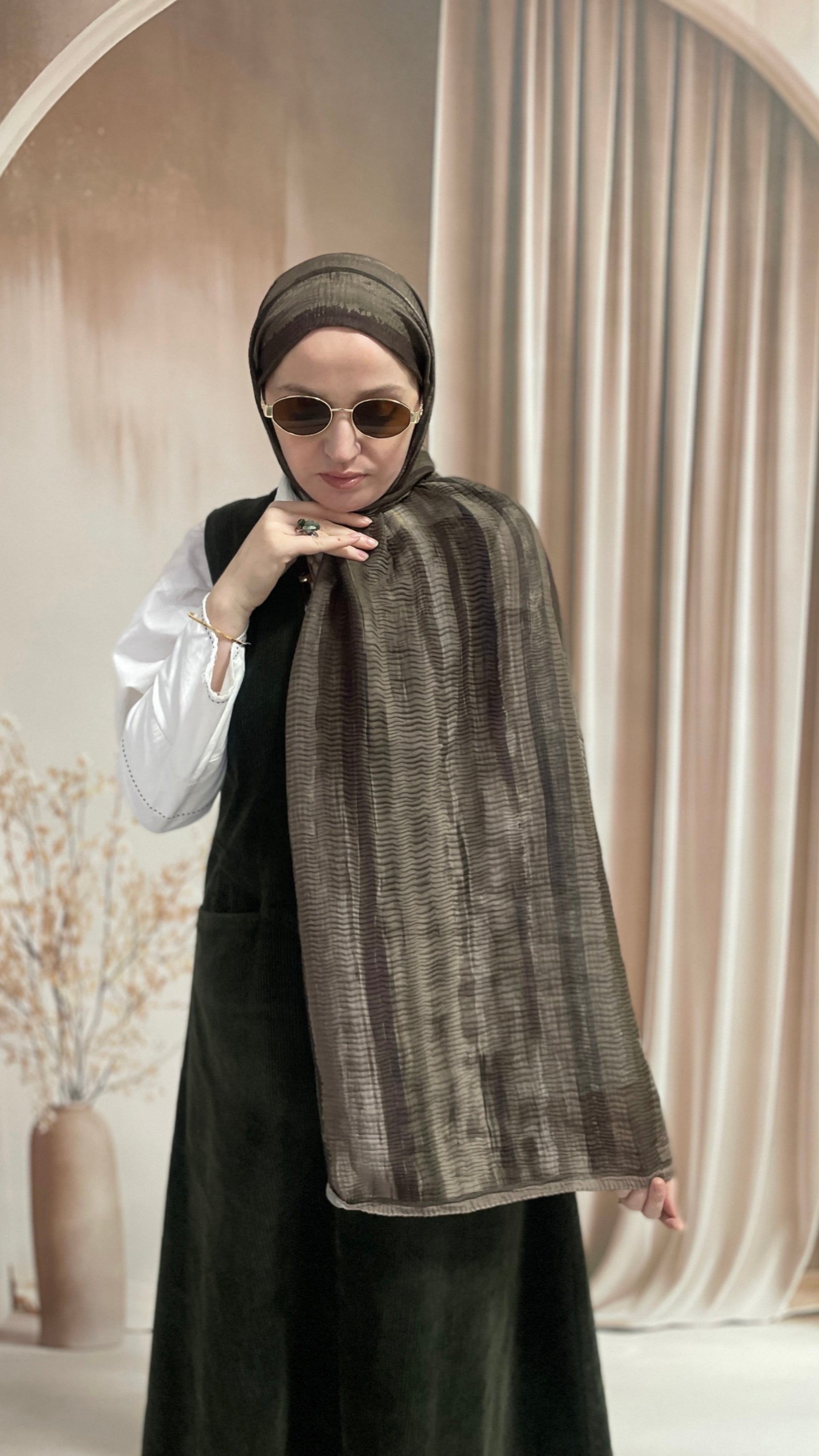 Tonsürton Çizgi Desen Müslin Şal Haki