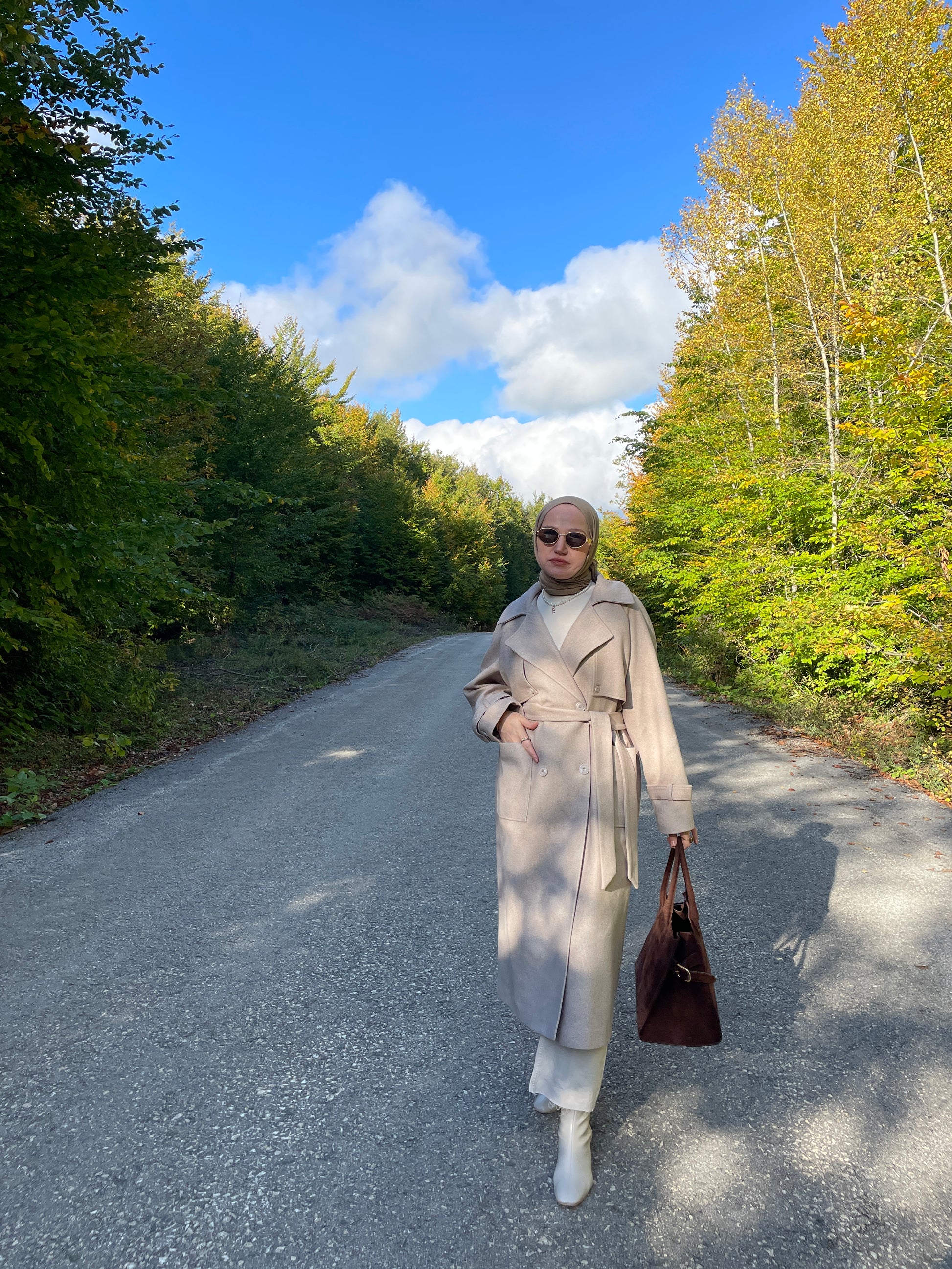 Trençkot Tasarım Premium Kaşe Kaban Bej