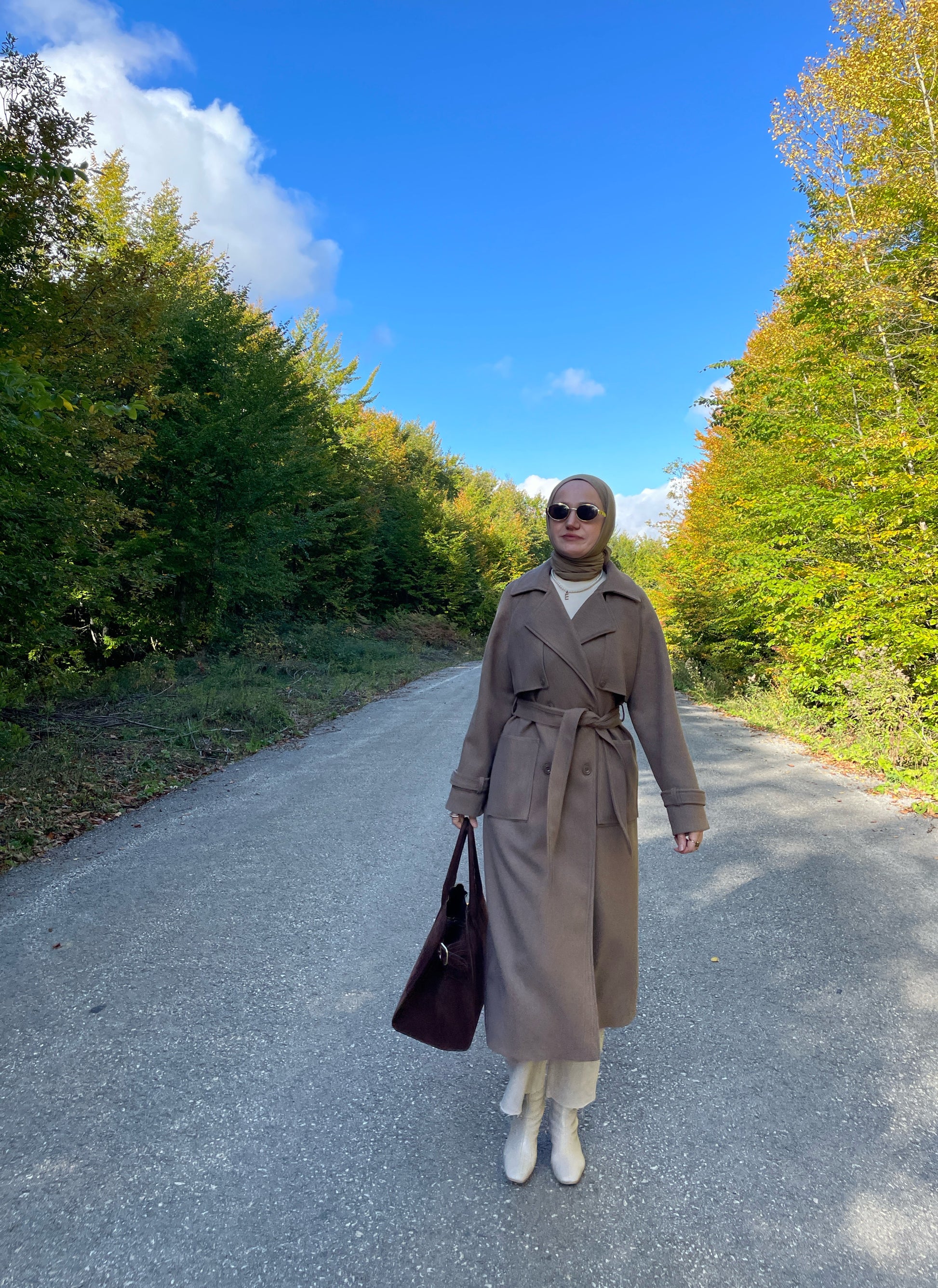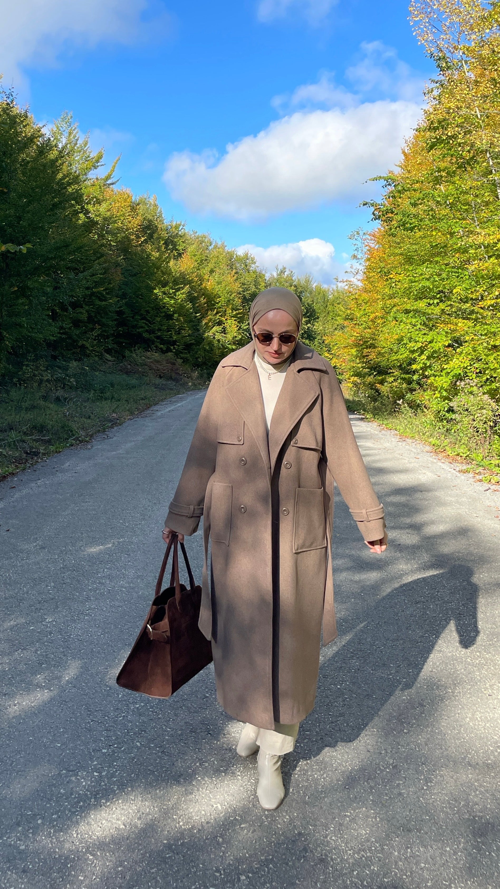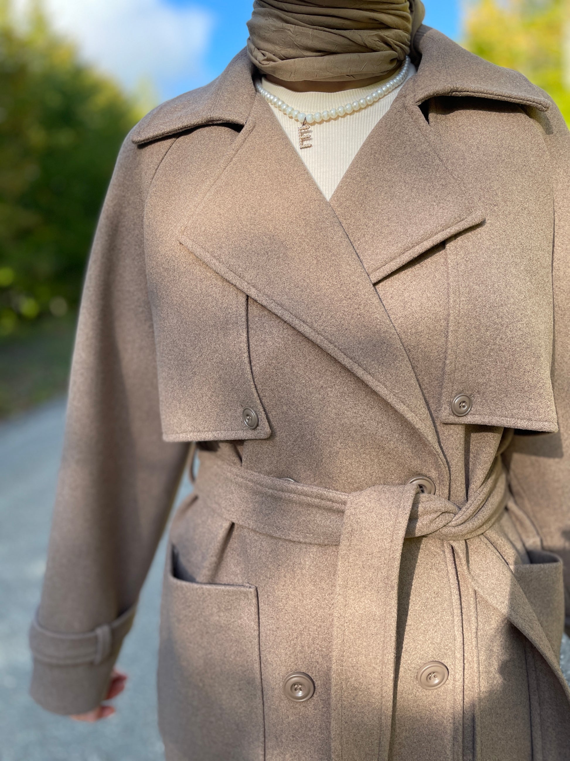 Trençkot Tasarım Premium Kaşe Kaban Vizon