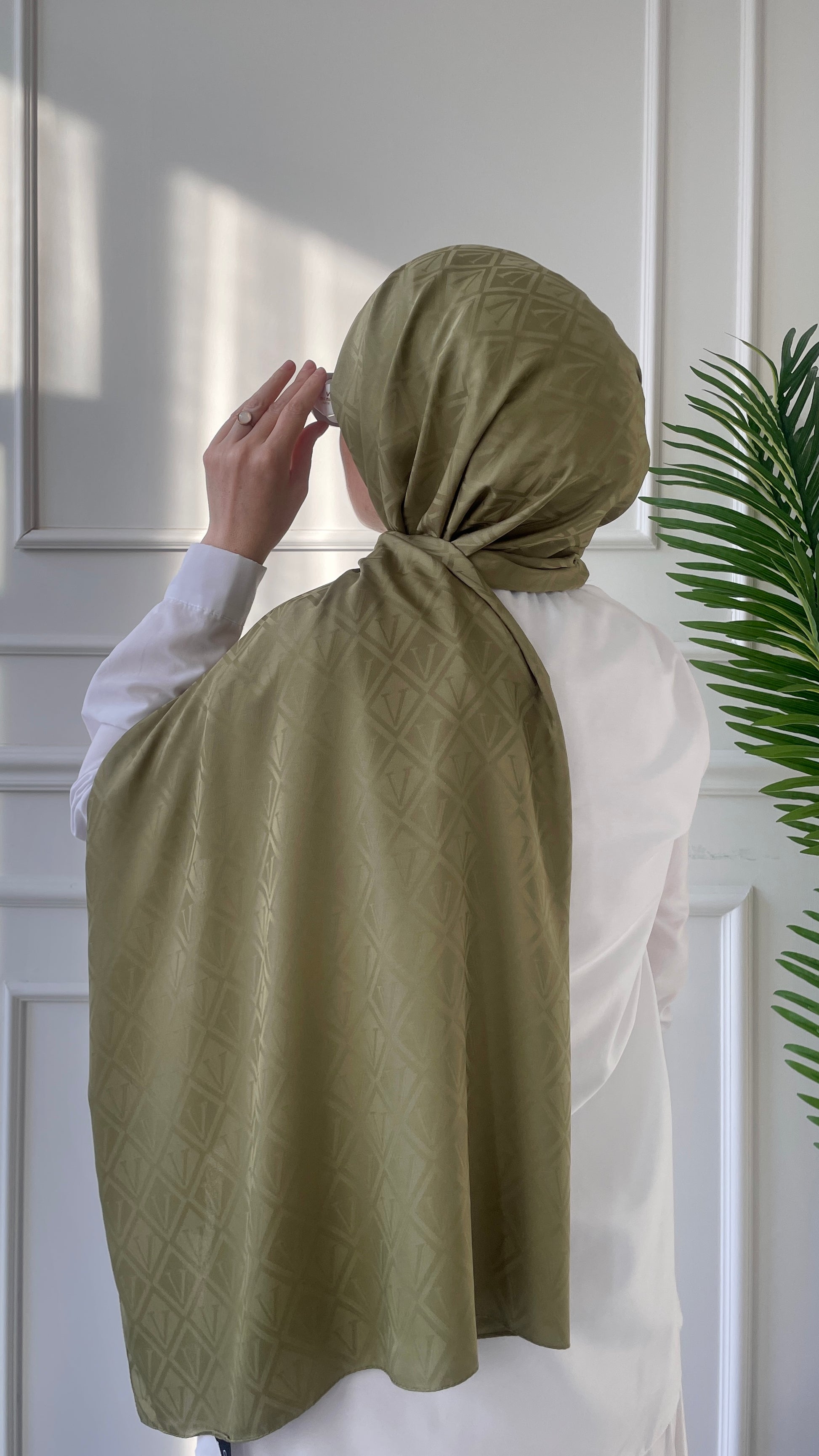 V Desen İpeksi Jakar Şal Yağ Yeşili