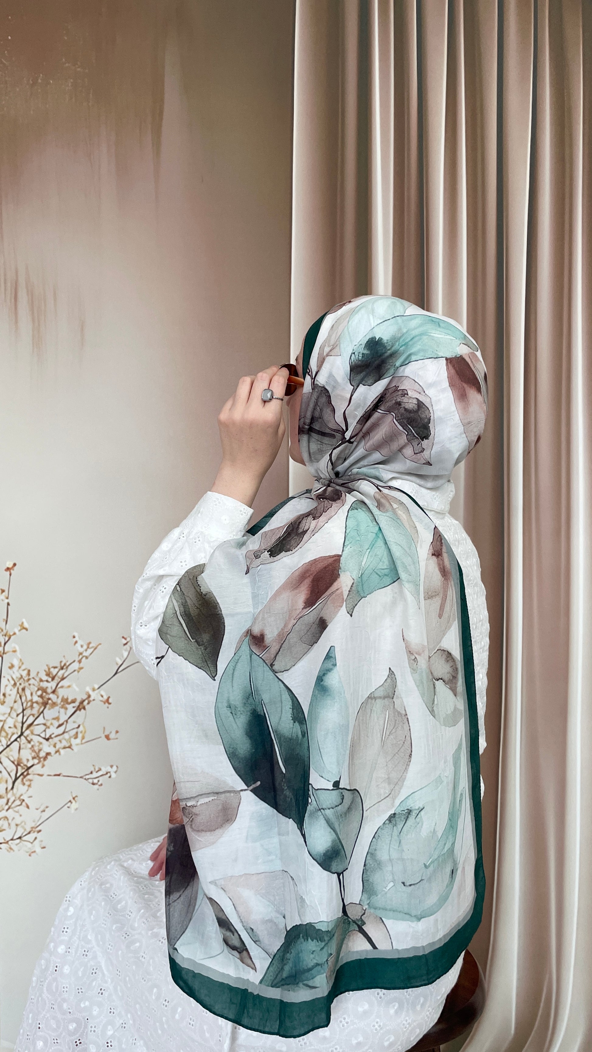 Yaprak Desen Bambu Soft Kraş Şal Petrol Yeşili