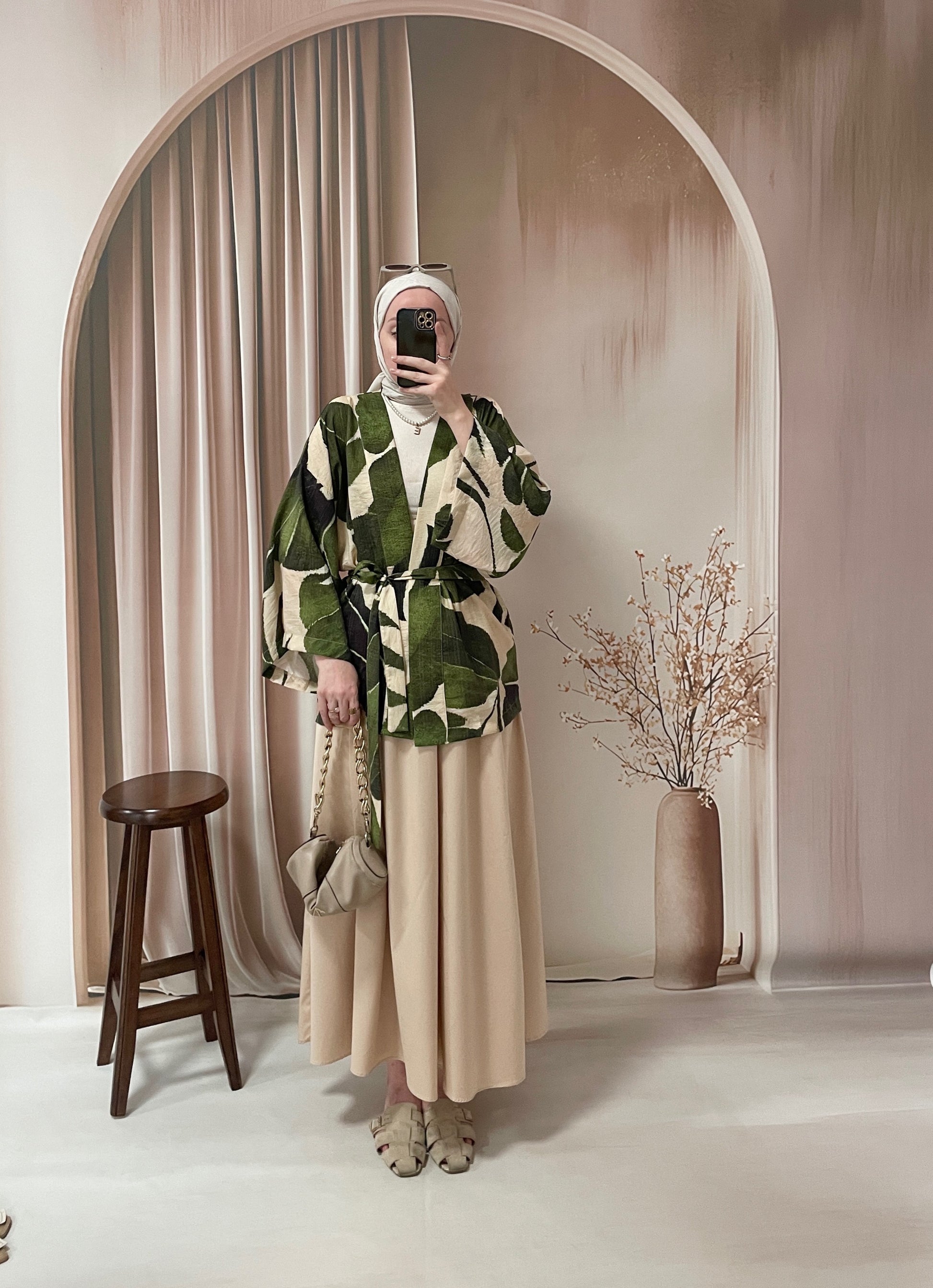 Yaprak Desenli Kimono Yeşil